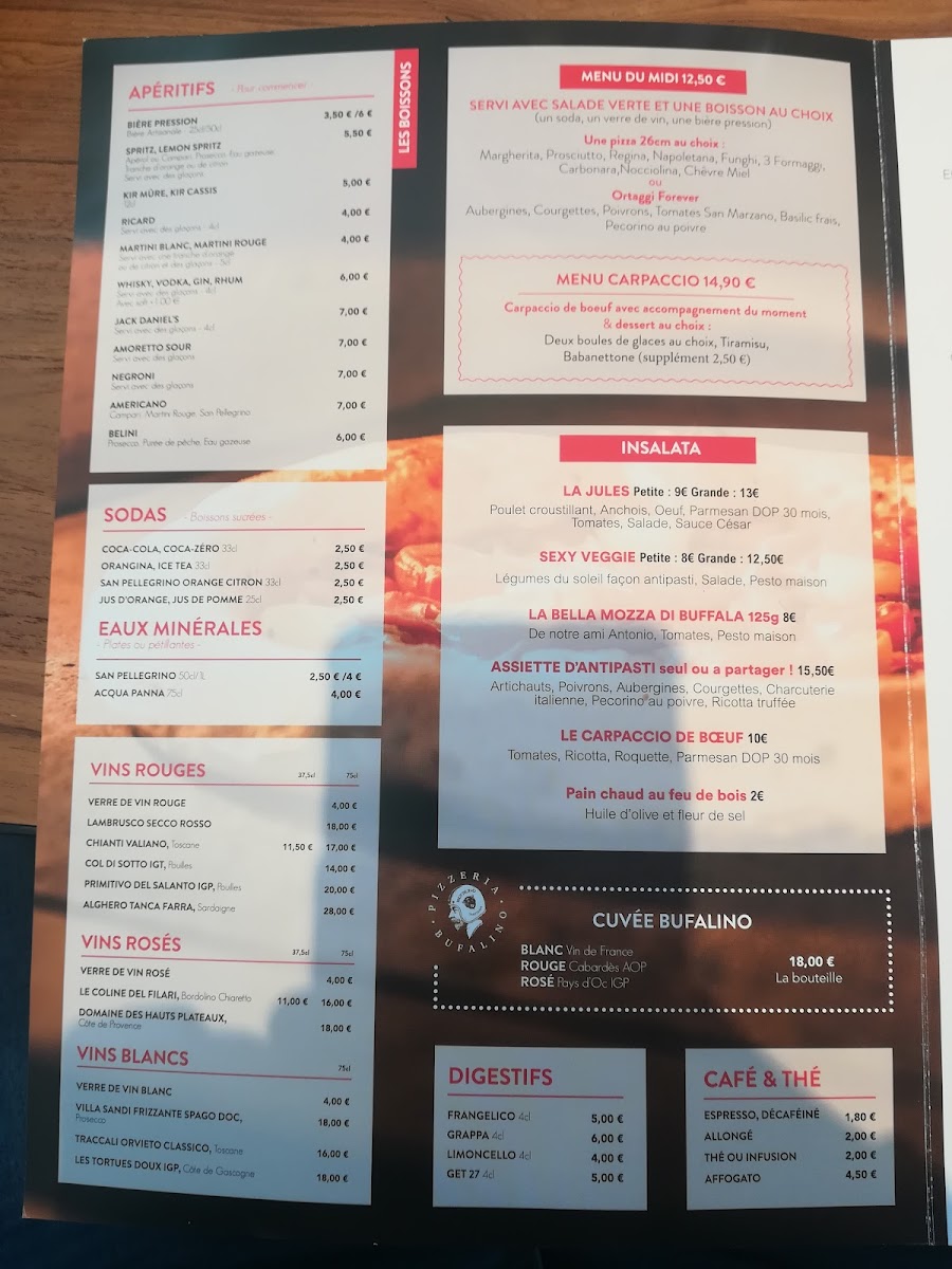 If you’re curious about what’s cooking at 6 Av. de la Dancelle in Saint-Jean, the Trattoria Bufalino Menu is where the story really begins. It reads like a little trip through Italy, starting with classic antipasti that are perfect for sharing-think creamy burrata, cured meats, and simple plates that let quality ingredients shine. Then come the pizzas, blistered and golden from the oven, with toppings that balance tradition and indulgence, from Margherita to richer, truffle-kissed options.